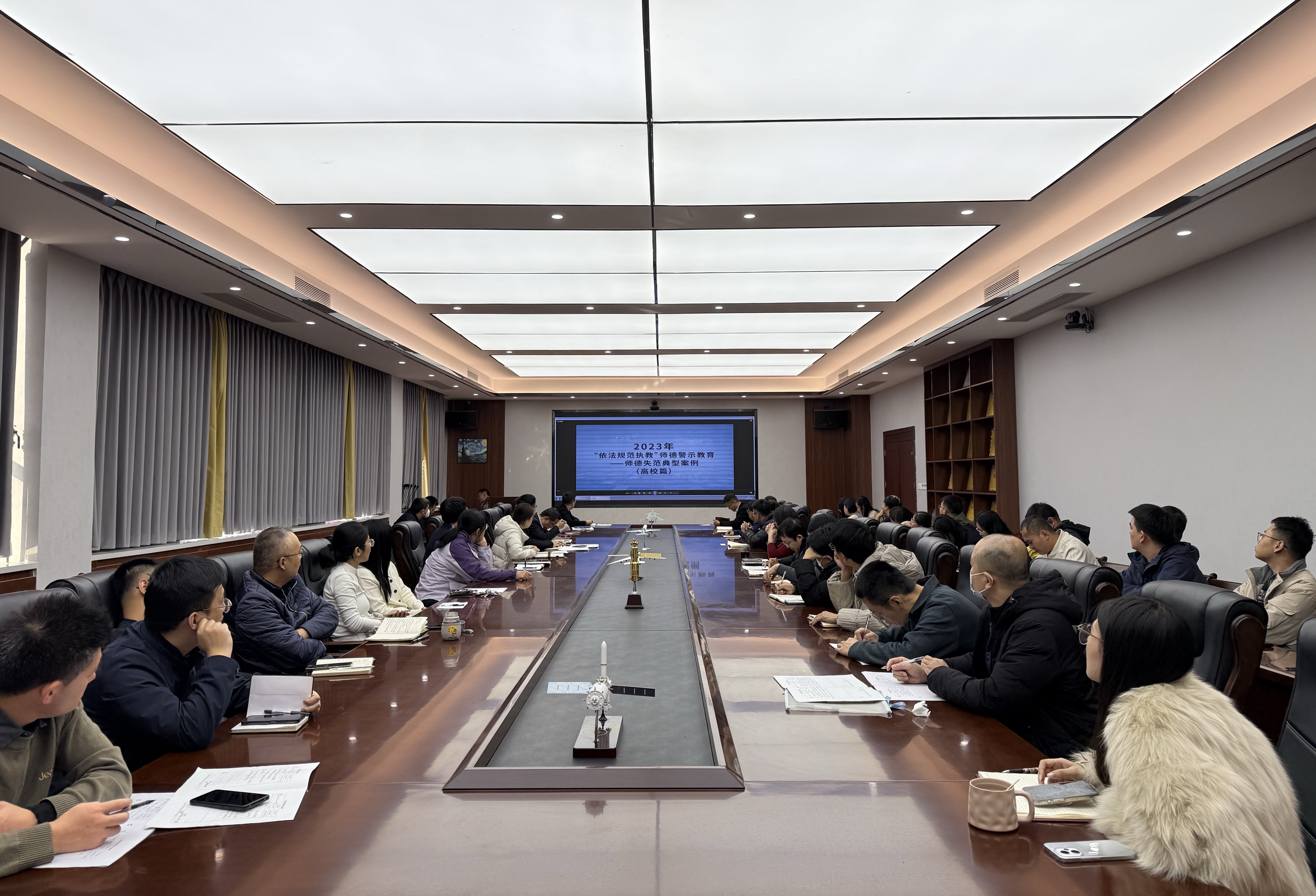 全体与会人员集中收看了教育部公开曝光的违反高校教师职业行为十项准则的典型案例警示教育片。通过剖析这些发生在高等教育领域的真实案例,深刻揭示了师德失范行为的严重危害性,为全体教职工敲响了警钟,引导大家以案为鉴、心有所畏、言有所戒、行有所止,时刻自重、自省、自警、自励。